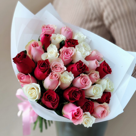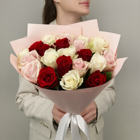 Микс роз белые+розовые 15шт